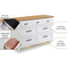 Spacious and stylish, the Artisan Double Dresser brings both form and function to your nursery. With seven generously sized drawers, it features soft-close glides, felt-lined top drawers, and cedar-lined bottoms to keep baby essentials neatly organized. It also features three-level touch lighting built into the base, perfect for late-night feeds or soft ambient lighting. Add the Artisan Changer Tray (sold separately) to create a secure changing station during the infant stage.