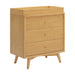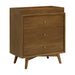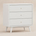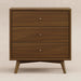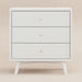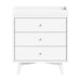 The Palma 3-Drawer Dresser is a sophisticated mid-century inspired design with tapered legs, brushed metal hardware, and smooth-glide drawers. It's a versatile modern piece, providing ample storage space that can double as a changing station. Pair with the Palma 4-in-1 Crib or Peggy 3-in-1 Crib for an elegant nursery.
